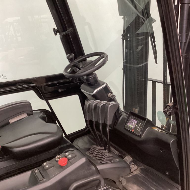 • Bijzonderheden : Volledig dichte cabine, Ruitenwissers, Luxe bestuurdersstoel, LCD kleuren display, Ruime ergonomische bestuurderscabine.