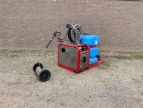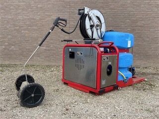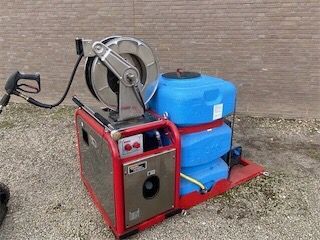 Zelfoprollende slanghaspel rvs met 35 mtr. slang, aggregaat